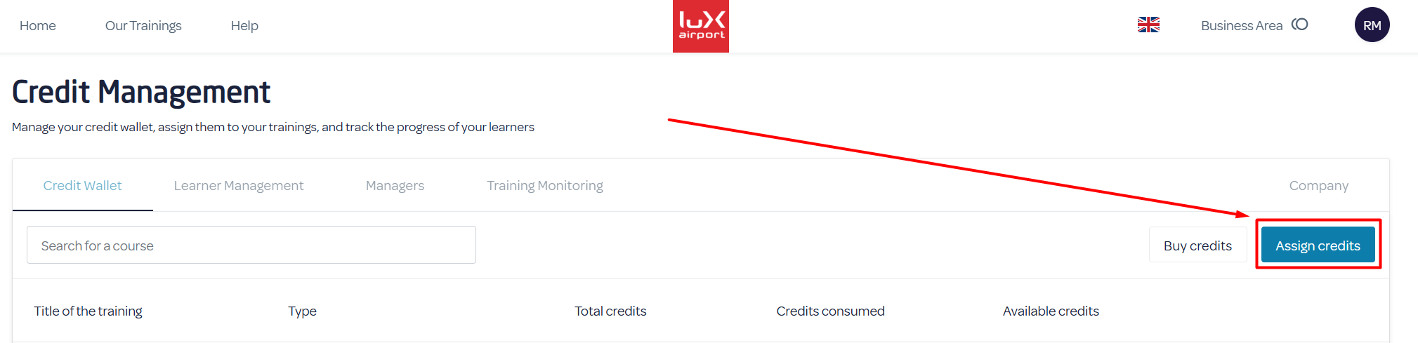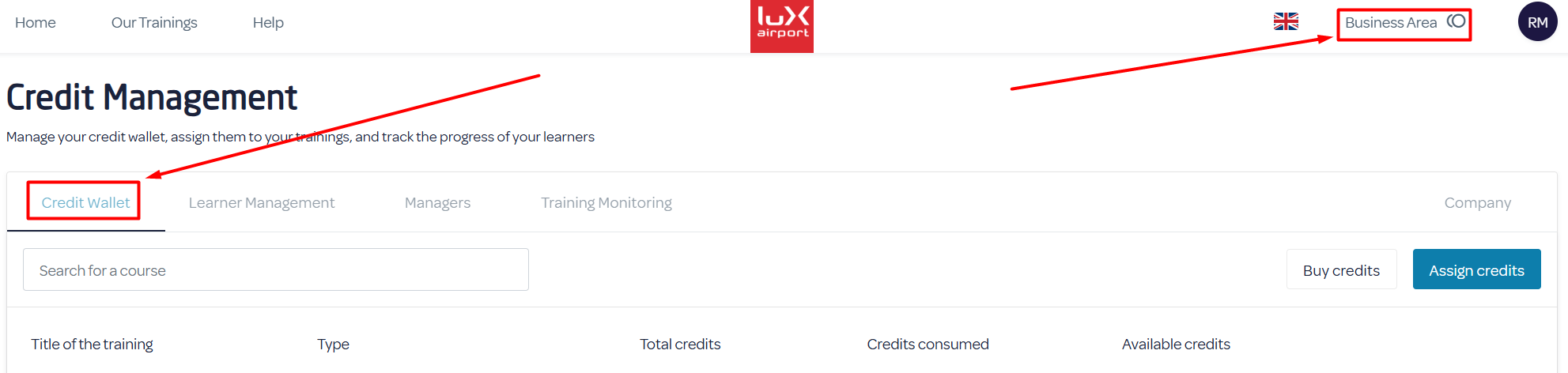 1) Click on "Business Area" then "Credit Wallet" 2) Click on "Buy credits" button 3) Create your training list with the “Add to list” button, select your payment method, then click on "Buy credits".