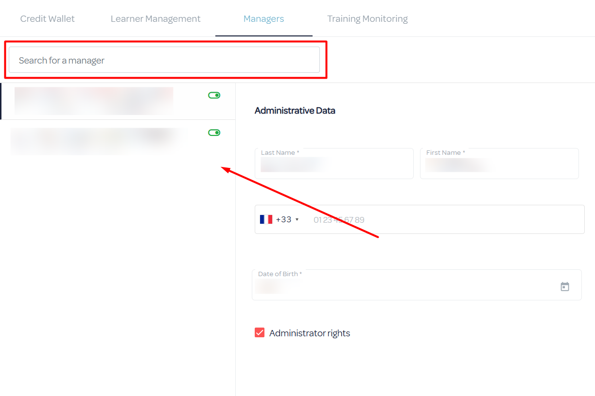 1) Rendez-vous dans l'espace entreprise 2) Cliquez sur l'onglet « Gestionnaires », puis sur le bouton « Nouveau gestionnaire ». 3) Saisissez les informations relatives au nouveau compte gestionnaire et enregistrez-les.