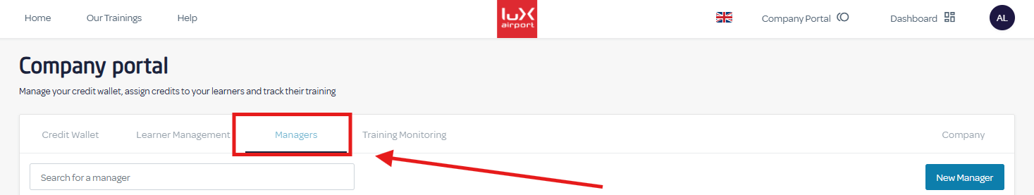 1) Go to the Company Portal 2) Click on the 'Managers' tab, then on the 'New Manager' button. 3) Enter the information for the new manager account and save it.