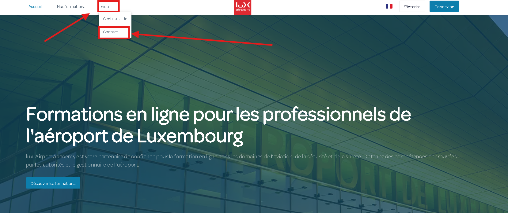 1) Cliquez sur le bouton Aide puis Contact